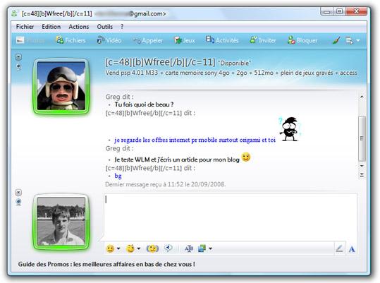 Option "Afficher ma webcam" sur Windows Live Messenger